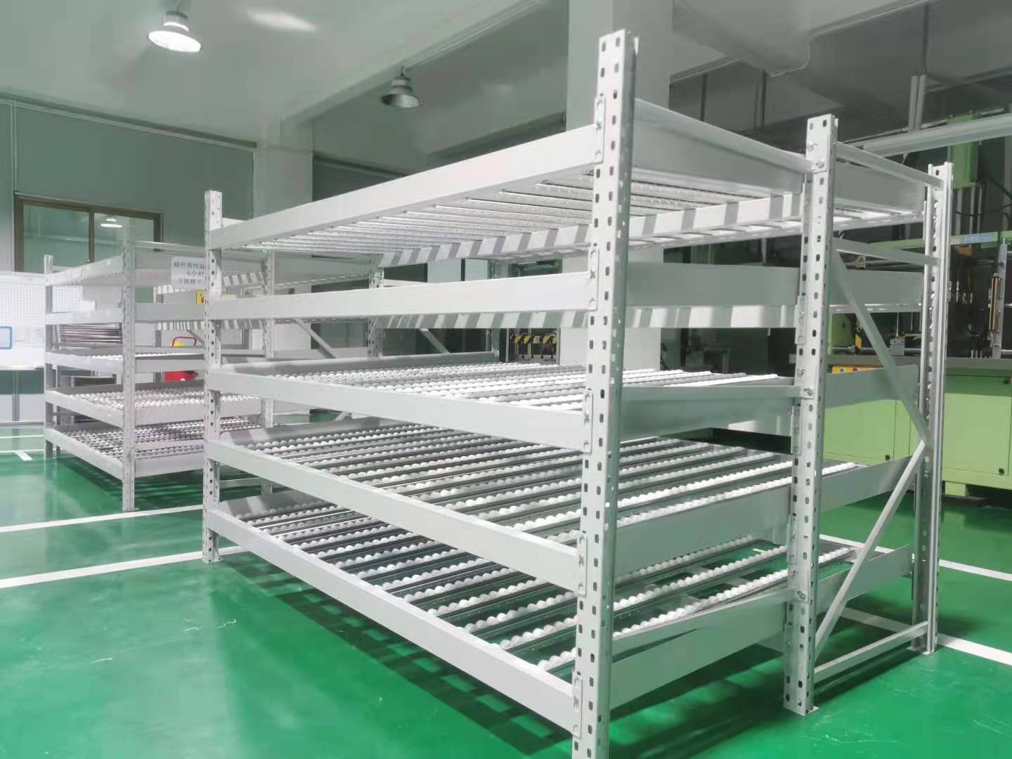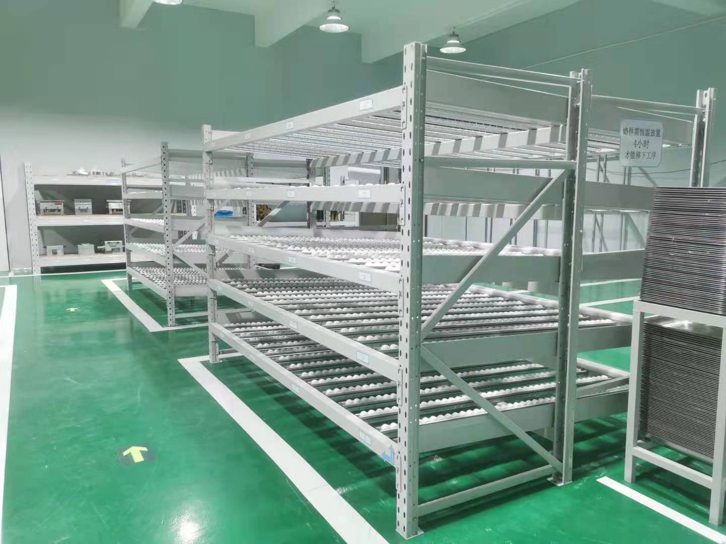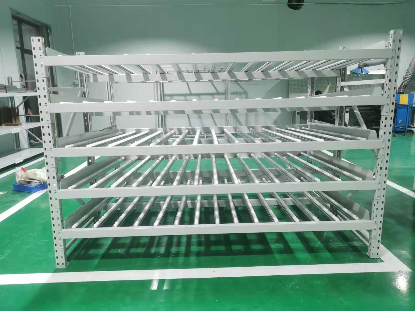 定制倉儲貨架除了單純的存儲貨物以外,很多企業(yè)還會有別的需求,比如倉儲貨架如何保證先進先出,讓貨物揀選更方便等。下面一起來看看流利式貨架鋁合金怎樣保證貨物實現(xiàn)先進先出的。下圖是我司為深圳一家大型電子廠定做的流利式貨架: