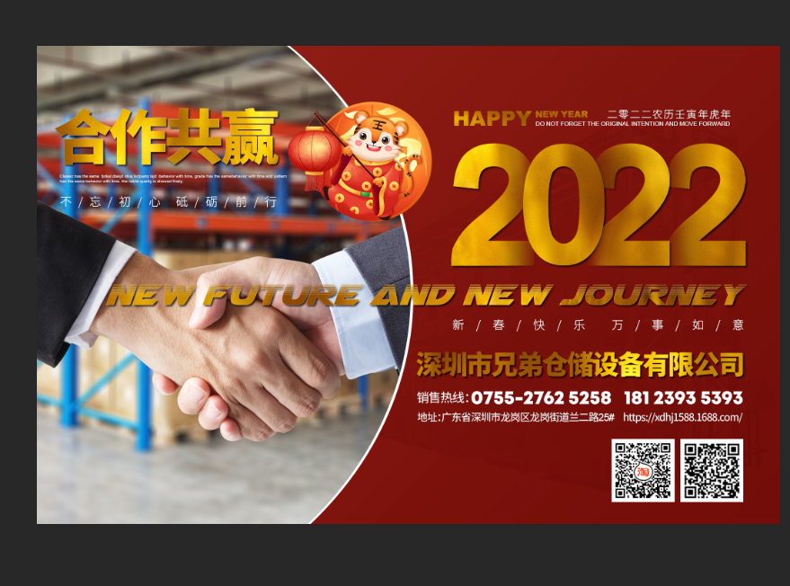 兄弟貨架工廠為了回饋新老顧客,在年底進(jìn)行貨架大促銷不僅價(jià)格優(yōu)惠,還特意給客戶們定制2022新年臺(tái)歷及筆記本、水杯、雨傘、凡是12月份下訂單的客戶都有機(jī)會(huì)領(lǐng)取精美禮物一份哦,下面小編帶大家看看新年臺(tái)歷吧,同時(shí)深圳貨架廠家也祝所有的客戶新年大吉,萬事如意!