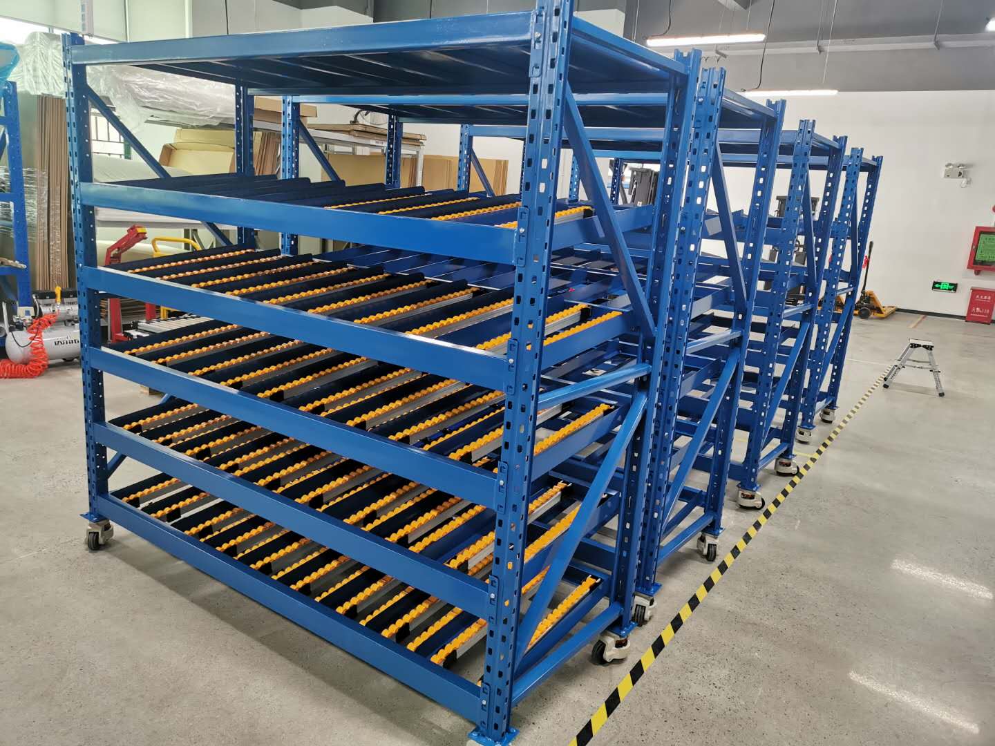很多客戶不太明白流利貨架是有什么用處?是將貨物置于滾輪上,利用一邊通道存貨,另一邊通道取貨,料架朝出貨方向向下傾斜,貨物在中立作用下向下滑動(dòng),可實(shí)現(xiàn)先進(jìn)先出,并可實(shí)現(xiàn)一次補(bǔ)貨,多次揀貨,流利架存儲(chǔ)效率高,適合大量貨物的短期存放和揀選,流利架廣泛應(yīng)用于配送中心,裝配車間及出貨頻率較高的倉(cāng)庫(kù),可以實(shí)現(xiàn)貨物先進(jìn)先出,一次補(bǔ)貨,多次揀貨,可加腳輪便于線旁作業(yè).