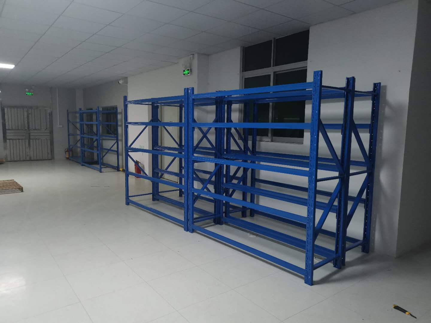 下圖是我司給深圳龍崗一家工廠安裝的貨架成品圖,由于客戶的貨物很重,也比較占地方、他們打算用貨架把倉庫整理一下,原是放在地上的,隨著貨物的增多,使用倉庫貨架是最明智的選擇。